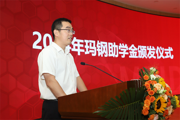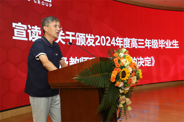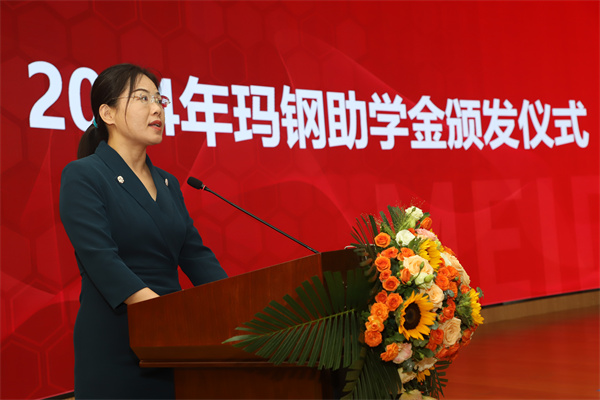 瑪鋼助學基金管理委員會會長、玫德集團董事局矩陣管理委員會副主席劉勇宣讀《關于頒發(fā)2024年度高三年級畢業(yè)生及教師瑪鋼助學金的決定》。