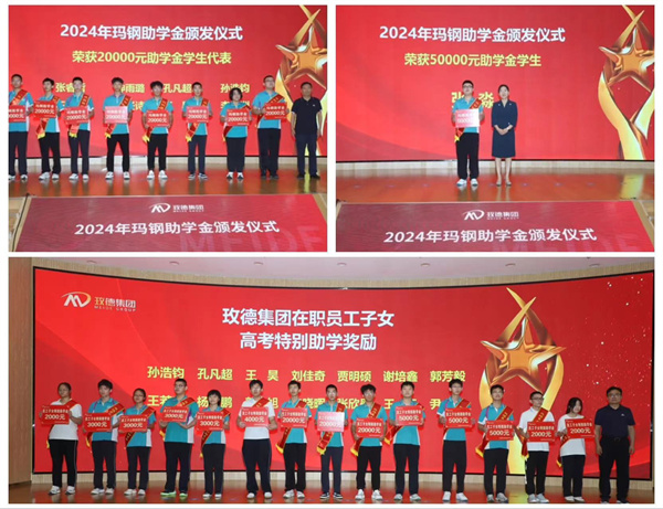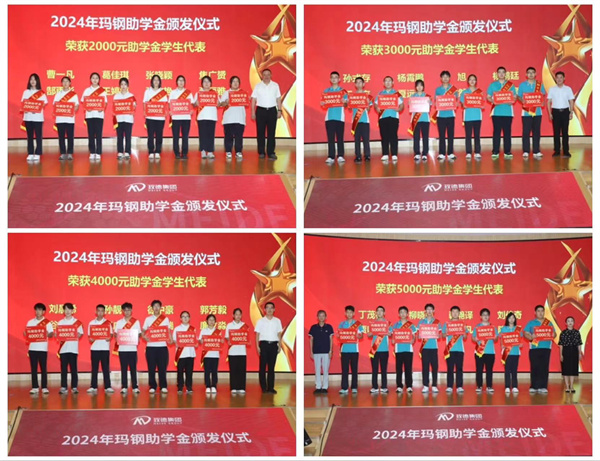 根據(jù)《瑪鋼助學基金管理章程》,183名畢業(yè)生榮獲瑪鋼助學金,獎勵金額74.6萬;104名教師榮獲瑪鋼助學金,獎勵金額32.29萬。玫德集團14名員工的子女獲得特別助學金獎勵,金額9.7萬。