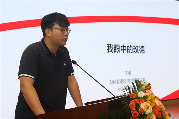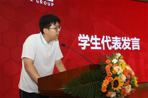 瑪鋼助學金獲得者、目前就職于玫德集團的干部代表于睿,向與會學生分享了在玫德的成長心路與寶貴經(jīng)驗,就未來學業(yè)規(guī)劃與職業(yè)發(fā)展提出建議,鼓勵大家勇毅前行。