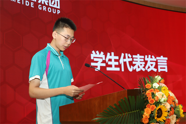 平陰一中張淼、實驗高中趙崟詩、工業(yè)學校郭芳毅和玫德集團員工子女賈明碩分別作為學生代表發(fā)言,他們衷心感謝玫德集團對平陰教育及其個人的支持,助學金不僅是經(jīng)濟援助,更是精神動力,他們將勇于追夢,不負期望,以實際行動回饋社會,書寫青春華章。