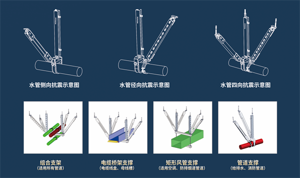 抗震支吊架是與建筑結(jié)構(gòu)體牢固連接,以地震力為主要荷載的抗震支撐設(shè)施,由錨固體、加固吊桿、抗震連接構(gòu)件及抗震斜撐組成。在最開始,國(guó)內(nèi)對(duì)于機(jī)電設(shè)施的保護(hù),主要承重作用,基本上沒有考慮抗震設(shè)計(jì),給系統(tǒng)安全帶來很大的隱患。