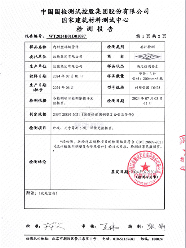 2024年8月,玫德集團(tuán)有限公司“邁克”牌襯塑瑪鋼,通過GB/T 28897-2021《流體輸送用鋼塑復(fù)合管及管件》檢測(cè)。GB/T 28897-2021標(biāo)準(zhǔn),對(duì)于規(guī)范流體輸送用鋼塑復(fù)合管及管件的生產(chǎn)、檢驗(yàn)和使用具有重要意義。它不僅能夠提高產(chǎn)品的質(zhì)量和安全性,還能促進(jìn)水務(wù)行業(yè)的健康發(fā)展。