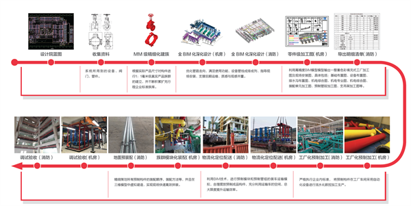 根據(jù)傳統(tǒng)消防安裝行業(yè)痛點問題,依托集團消防領域一站式產(chǎn)品,根據(jù)項目要求出具定制化解決方案,通過BIM技術、工廠化預制加工、數(shù)字化安裝、智能運維等技術,實現(xiàn)消防安裝數(shù)字化,消防運行智能化。