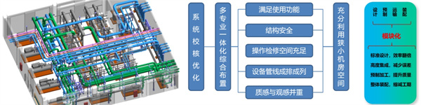 設計綜合考慮循環(huán)水泵的選型、數(shù)量、系統(tǒng)分類;機房內(nèi)的綜合布置情況;裝配單元的運輸、吊裝就位、安裝條件等限制因素。