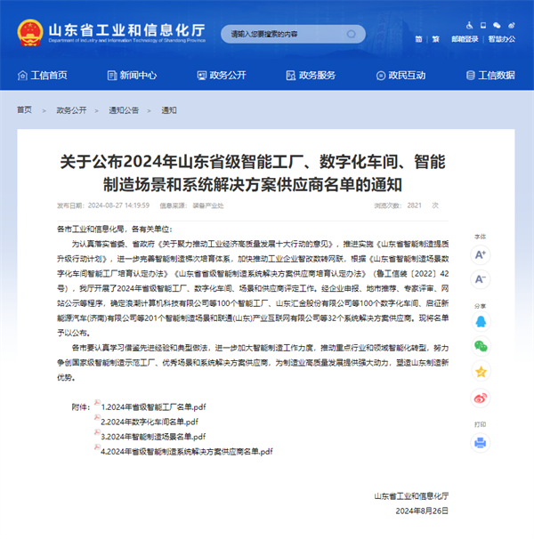 2024年8月27日,山東省工業(yè)和信息化廳發(fā)布《關(guān)于公布2024年山東省級智能工廠、數(shù)字化車間、智能制造場景和系統(tǒng)解決方案供應(yīng)商名單的通知》,經(jīng)企業(yè)申報、地市推薦、專家評審、網(wǎng)站公示等程序,濟南邁克閥門科技有限公司的邁克高端流體控制閥門智能工廠榮獲“山東省智能工廠”稱號,濟南科德智能科技有限公司榮獲“山東省智能制造系統(tǒng)解決方案供應(yīng)商”稱號。