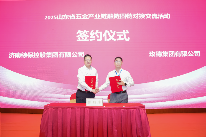 濟(jì)南綜??毓杉瘓F(tuán)有限公司黨委書(shū)記、董事長(zhǎng)薛寶旭與玫德集團(tuán)副總裁、公共關(guān)系部總裁于博元簽署《戰(zhàn)略合作框架協(xié)議》