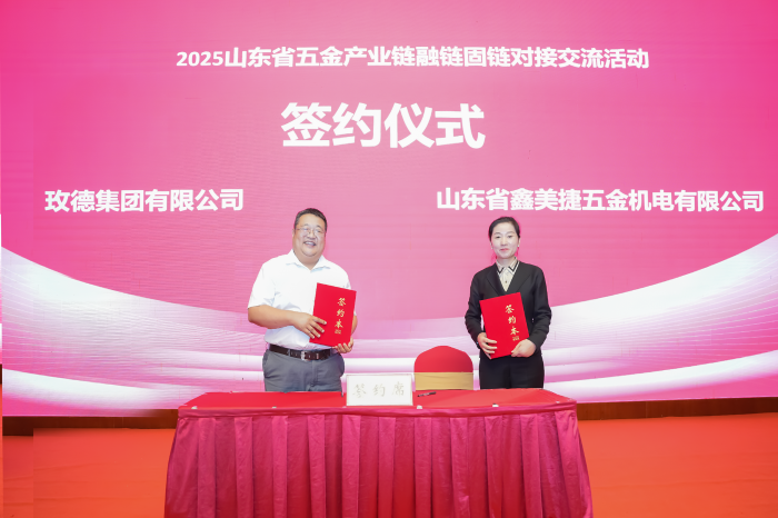 玫德集團(tuán)有限公司山東銷(xiāo)售公司總經(jīng)理馬萬(wàn)軍與山東省鑫美捷五金機(jī)電有限公司總經(jīng)理金曉榮簽署《深化合作框架協(xié)議》