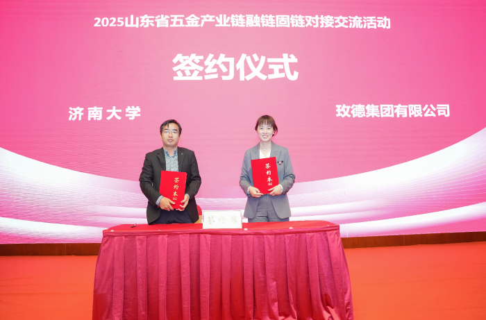 濟(jì)南大學(xué)機(jī)械學(xué)院教授鐘文鎮(zhèn)與玫德集團(tuán)有限公司人力資源部招聘中心總監(jiān)馮楊簽署《科教產(chǎn)教協(xié)同育人聯(lián)合培養(yǎng)材料類(lèi)專(zhuān)業(yè)學(xué)位研究生協(xié)議》