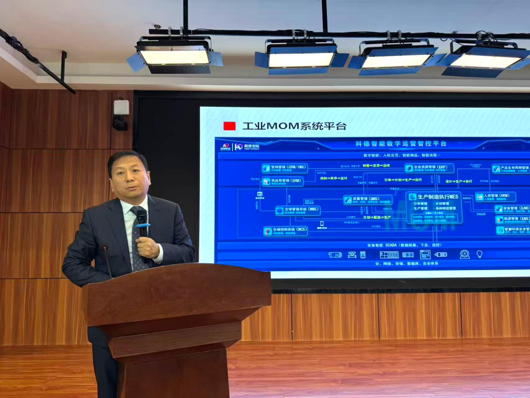 在主旨報告中,孔主席圍繞玫德集團(tuán)在核心系統(tǒng)與技術(shù)應(yīng)用上的成果,通過自主研發(fā)的工業(yè)MOM系統(tǒng)平臺、以“工業(yè)立庫+MES ”為核心的“一個流”生產(chǎn)集成化智能工廠模式,以及研發(fā)的智慧能源管控平臺的應(yīng)用等多個具體案例,分享了玫德集團(tuán)的數(shù)字化建設(shè)經(jīng)驗。